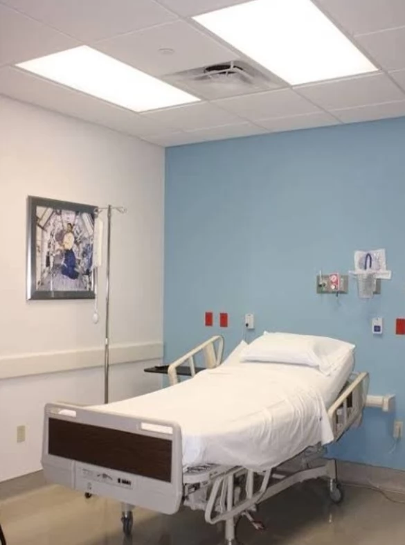 Warna polos seperti putih, biru, atau hijau yang sesuai dengan identitas rumah sakit dan mudah diidentifikasi.